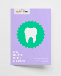 Les caries sont le grand ennemi des enfants et des dentistes. On voit de plus en plus d'enfants jeunes qui en souffrent. En cause ? Le sucre, les boissons sucrées, le grignotage, une mauvaise hygiène bucco-dentaire. Et pourtant, on pourrait éviter d'en arriver là. Le meilleur outil, c'est bien sûr la prévention et la communication ! Ma boîte Stop Caries est une solution clé en main très complète. On y trouve un livret qui explique tout sur le soin des dents des bébés aux grands enfants. Par âge, on nous enseigne en tant que parents à prendre soin des dents de nos enfants et leur inculquer de bonnes bases, une fois qu'ils deviennent autonomes. Dans cette boîte, il y a aussi une petite histoire sur la première visite chez le dentiste qui est rassurante et bienveillante, un petit jeu, un carnet de liaison etc.. Une comptine à écouter sur le smartphone ainsi qu'un sablier pour le brossage des dents numérique sont aussi proposés. Pour ce point, j'aurais peut-être aimer trouver un vrai sablier. Conclusion : un outil pédagogique complet conçu par des experts : dentistes, orthodontistes qui est d'intérêt public !